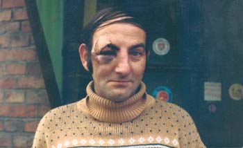 als wäre in seinem Gesicht mal eine Atombombe hochgegangen, daß er sich